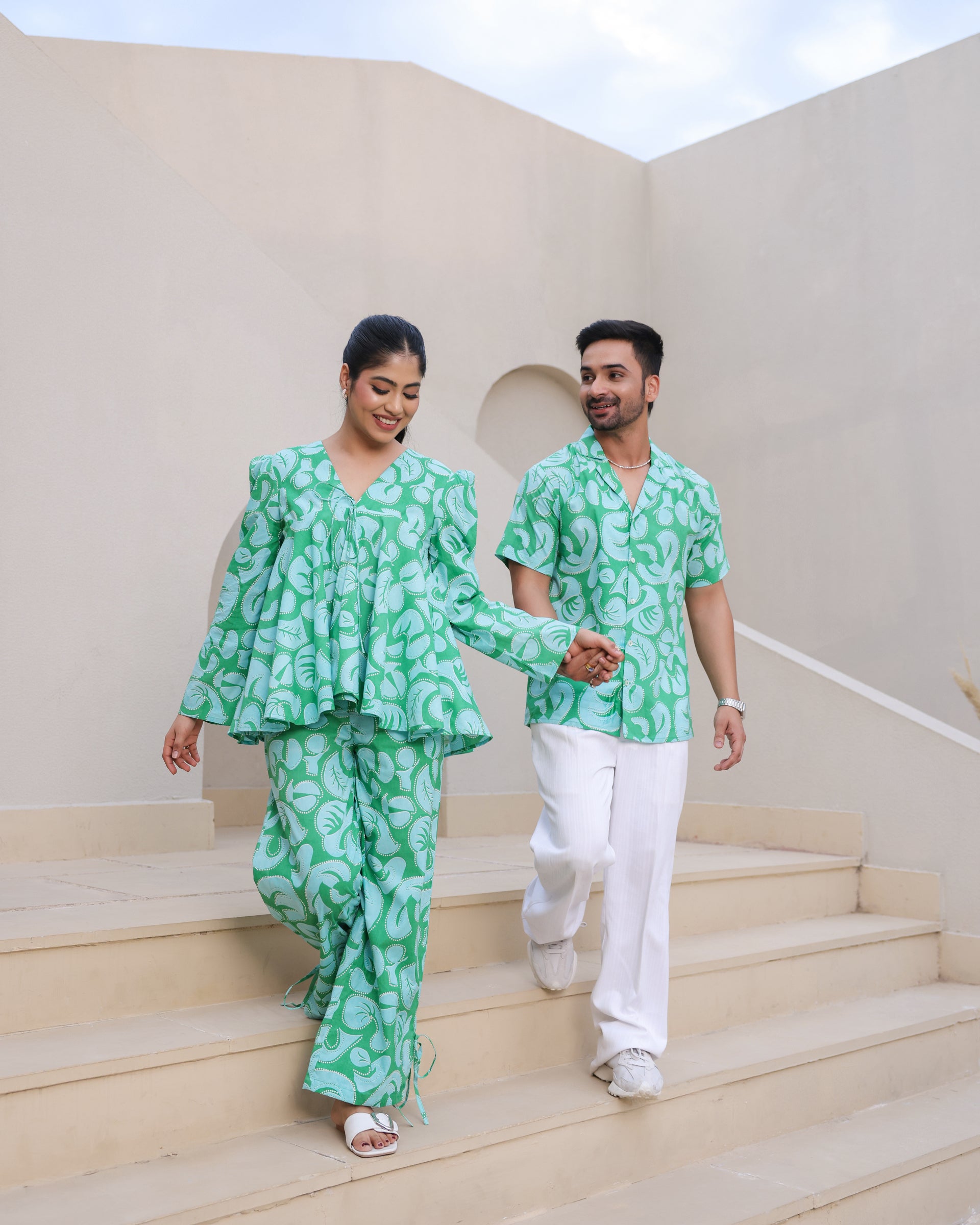 Tropical Sage Leaf Printed Puff Sleeve Co-Ord Set