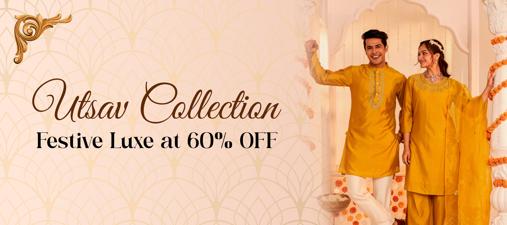 Mustard Utsav Embroidered Mens Kurta Pajama